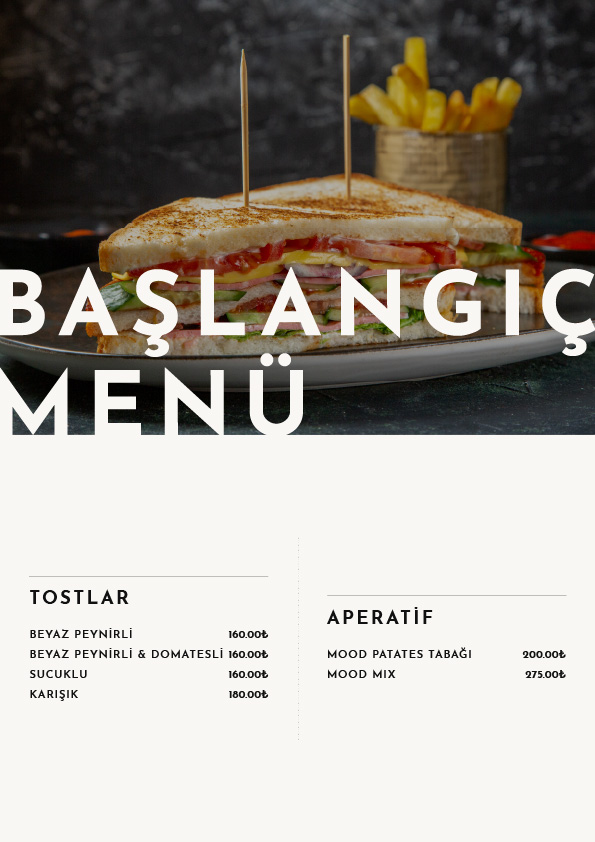 MOOD SANDVİÇ 150.00₺ MOOD PATATES TABAĞI 110.00₺